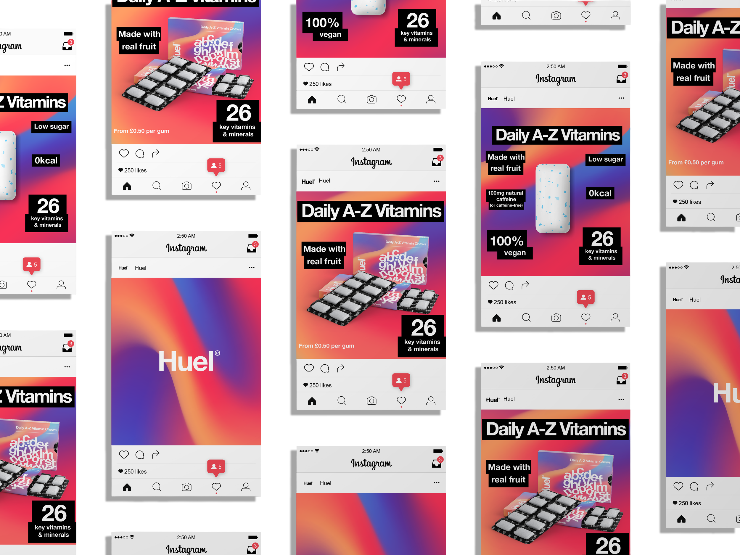 The challenge was to conceptualise a launch for a hypothetical new product line: Huel Daily A-Z Vitamin chewing gum. The objective was to design a packaging system and a motion-led launch campaign that simplified complex nutritional information while strictly adhering to Huel’s iconic, minimalist brand architecture.